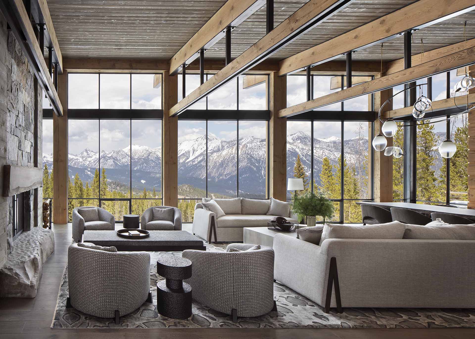The architects carefully balanced luxury with the rugged beauty of the surroundings, featuring a harmonious blend of wood, stone, and steel throughout the home. Central to this seamless integration with nature are the MHB ultra-slim steel windows and doors, which maximize natural light and frame the expansive views of the surrounding 160 acres. These elegant windows not only flood the home with light but also create a strong connection between the interior and the stunning Montana landscape.